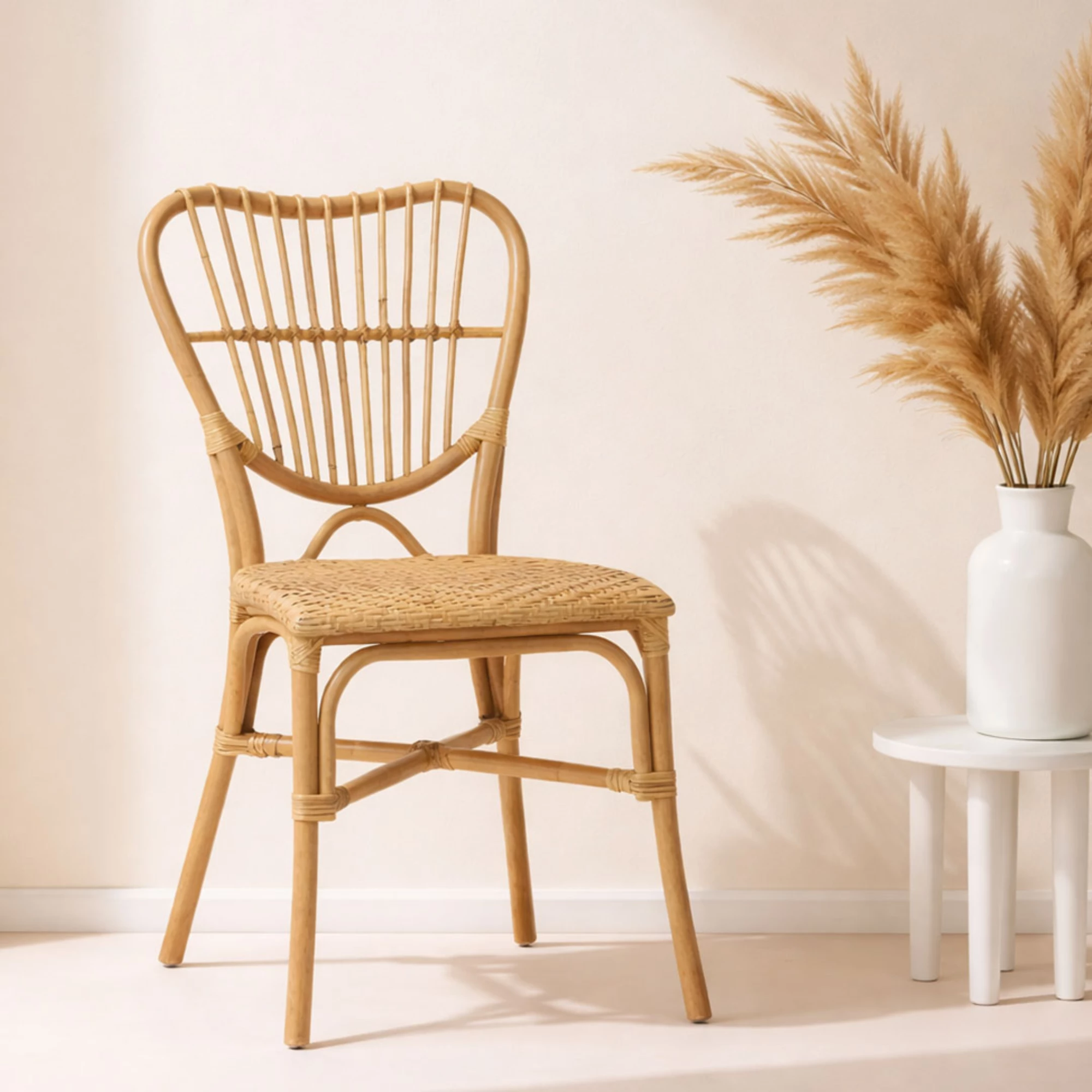 Scaun într-o nuanță naturală de bambus, care aduce căldură și un aspect relaxat în spațiile HoReCa. Tonul natural se integrează ușor în cafenele, restaurante sau zone de lounge, completând concepte de amenajare moderne sau casual.