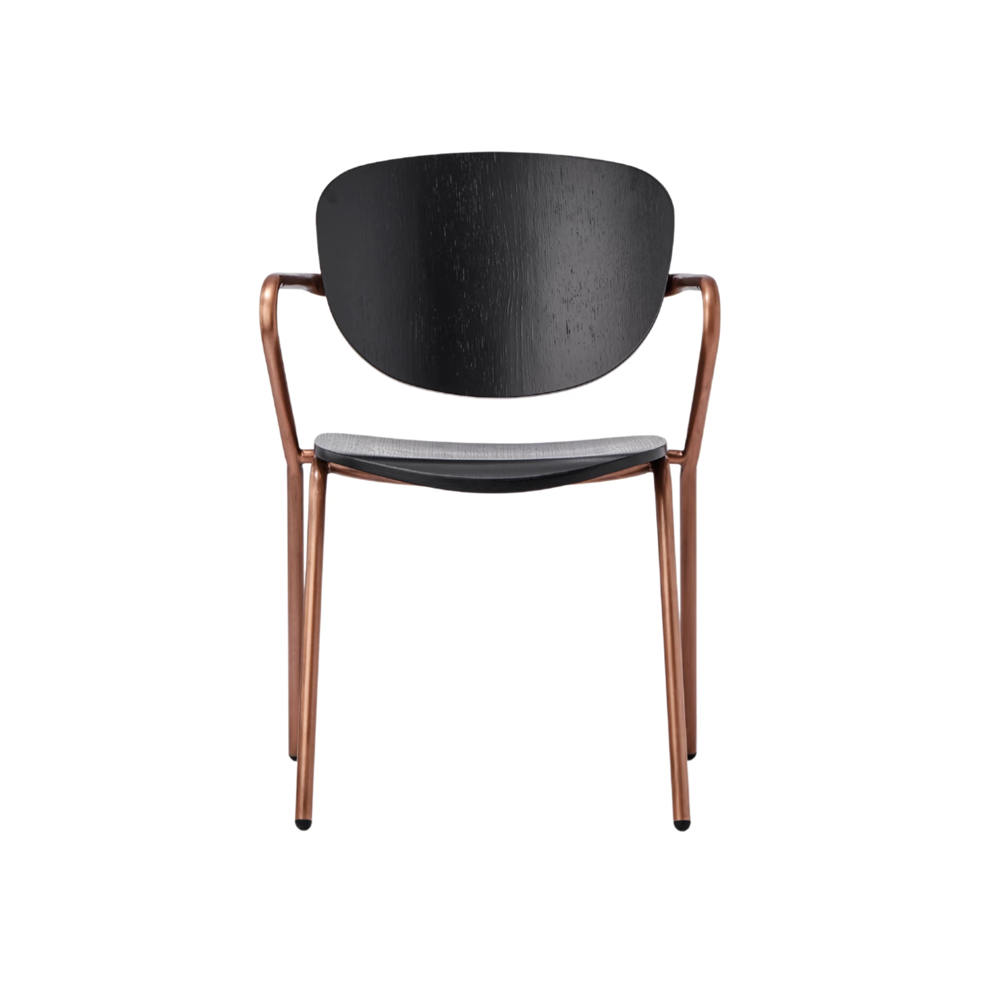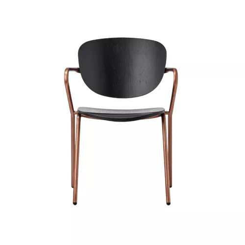 Alphie A este un scaun metalic cu brațe, având un cadru din oțel și șezut și spătar din furnir. Structura sa elegantă poate fi personalizată pentru a se adapta diverselor stiluri de design interior. Este ideal pentru locații HoReCa care doresc confort și stil.