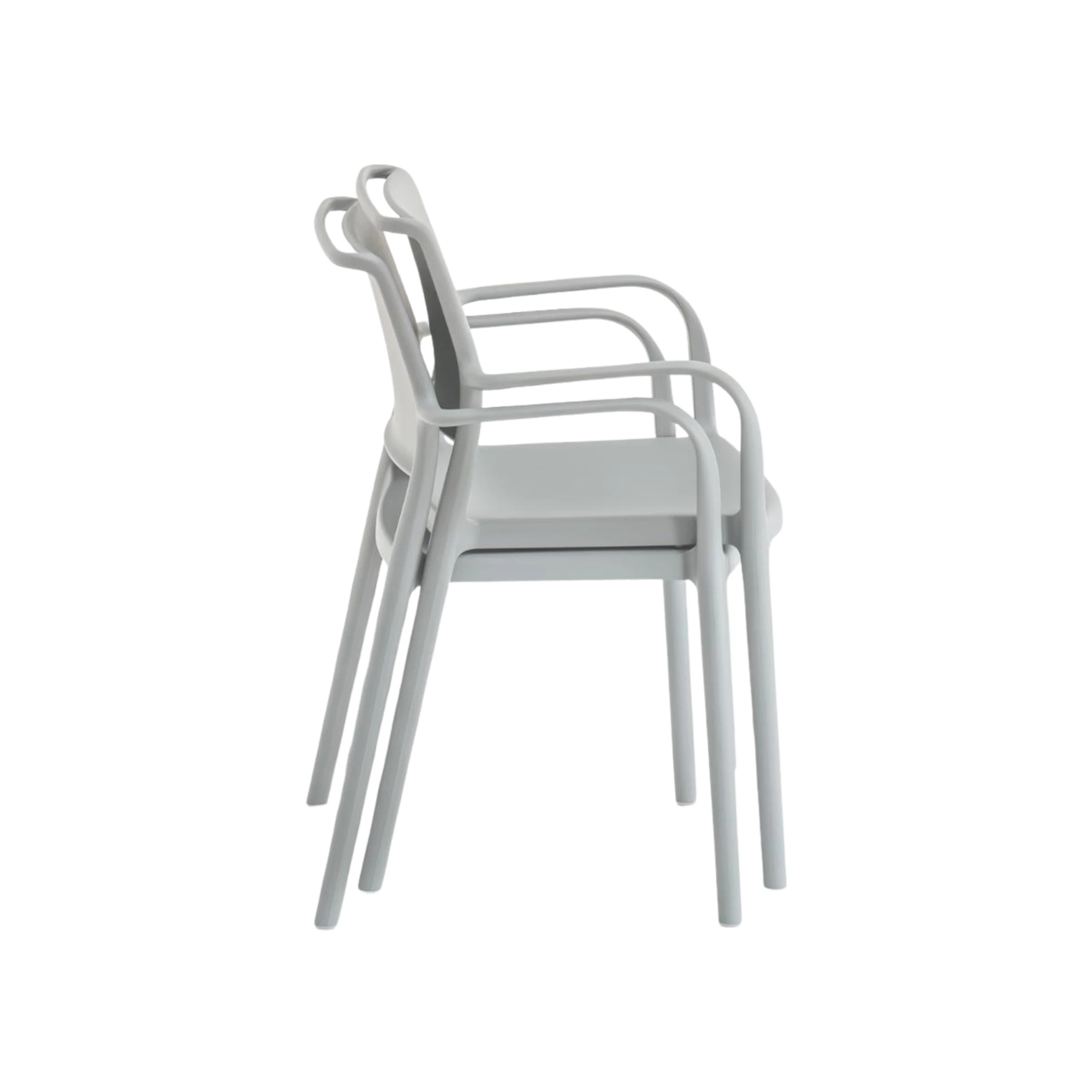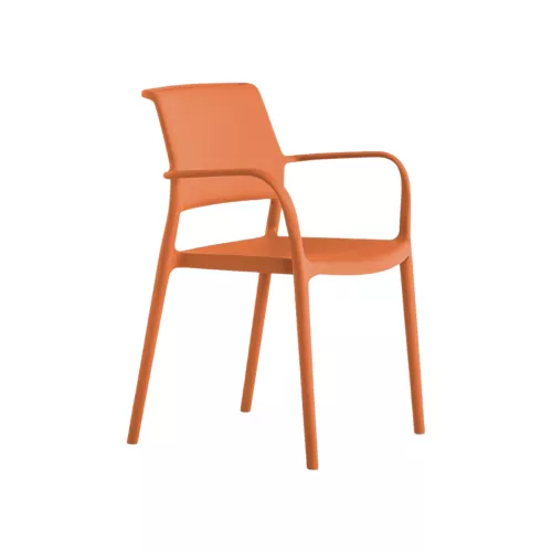 Ara 315 este un scaun din polipropilenă cu cotiere, stivuibil și potrivit pentru terase și spații horeca în aer liber. Partea superioară a spătarului formează un mâner mare pentru o manevrare ușoară. Picioarele conice îi conferă o siluetă elegantă, fiind în același timp durabil și rezistent. Disponibil în mai multe culori.