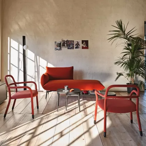 Area Dormeause DV2_DRM M TS este o dormeuză elegantă, concepută pentru spații horeca. Are șezut și spătar moale, tapițate, susținute de un cadru din oțel lăcuit, disponibil în mai multe culori. Se integrează perfect în lounge-uri, recepții și săli de așteptare moderne.