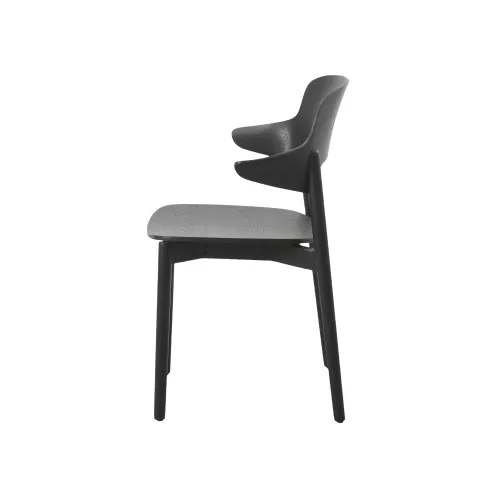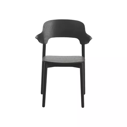 Fotoliu modern din stejar masiv, cu design simplu și brațe integrate. Ideal pentru amenajări HoReCa ce pun accent pe materiale naturale. Disponibil în diferite nuanțe de lemn.