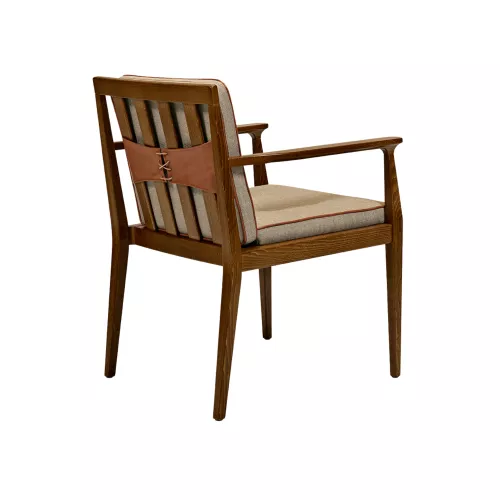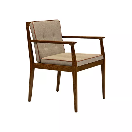 Aurora este un scaun din lemn cu brațe, conceput pentru confort și durabilitate. Are cadru din fag disponibil în mai multe finisaje și șezut și spătar tapițate cu materiale profesionale sau piele ecologică, ideale pentru spații cu trafic intens.