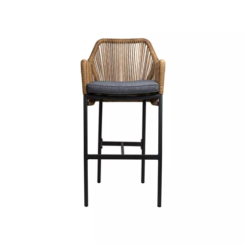Scaunul de bar pentru terasă Baleric este special conceput pentru stil și rezistență în mediile Horeca solicitante. Având o structură robustă din aluminiu antracit și spătar și cotiere din răchită rezistentă la UV, acesta îmbină durabilitatea cu o estetică modernă. Ideal pentru spațiile de ospitalitate în aer liber, aspectul său rafinat se potrivește atât hotelurilor, restaurantelor, cât și cafenelelor. Disponibil în maro, verde, albastru și gri, Baleric oferă opțiuni vibrante de personalizare. Include o pernă confortabilă și are o formă ergonomică pentru un confort sporit la ședere. Este disponibil și un scaun de terasă asortat, ceea ce îl face soluția perfectă pentru amenajări de terase Horeca unite.