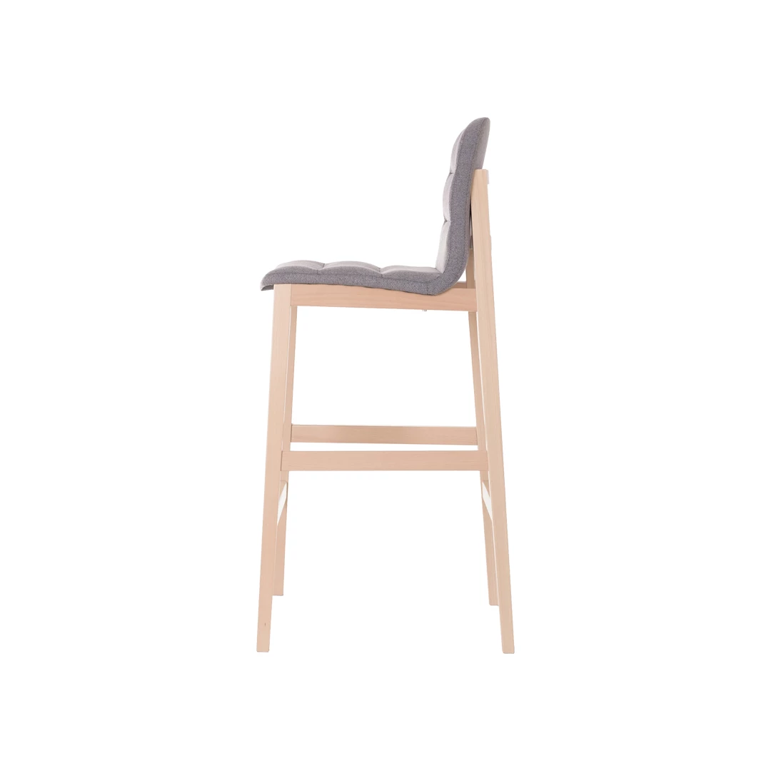 Scaunul de bar Bello BK îmbină designul rafinat cu confortul și durabilitatea. Cadrul său din lemn de fag, disponibil într-o gamă de finisaje colorate, dispune de un suport pentru picioare din lemn pentru un aspect uniform. Șezutul și spătarul tapițate, oferite din țesături de calitate sau piele ecologică, asigură un confort de durată. Perfect pentru baruri, cafenele și alte spații horeca.