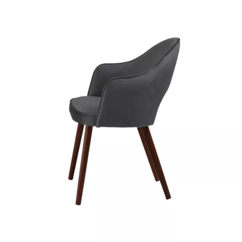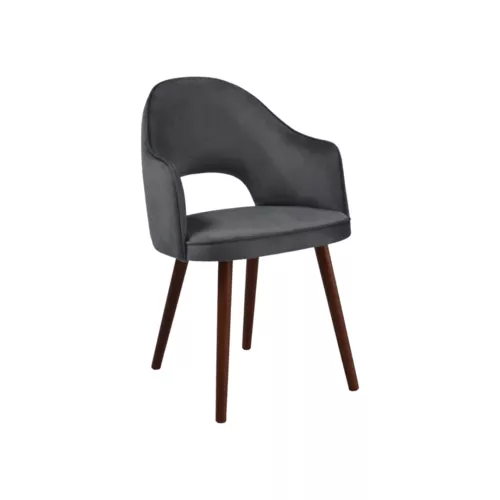 Bistra A Gap este un scaun modern, tapițat, cu brațe și spătar decupat, ce îmbină confortul cu un design atrăgător. Picioarele sunt din lemn de fag, disponibile în mai multe nuanțe, iar tapițeria poate fi aleasă dintr-o gamă variată de materiale profesionale sau piele ecologică, ideale pentru spații horeca.