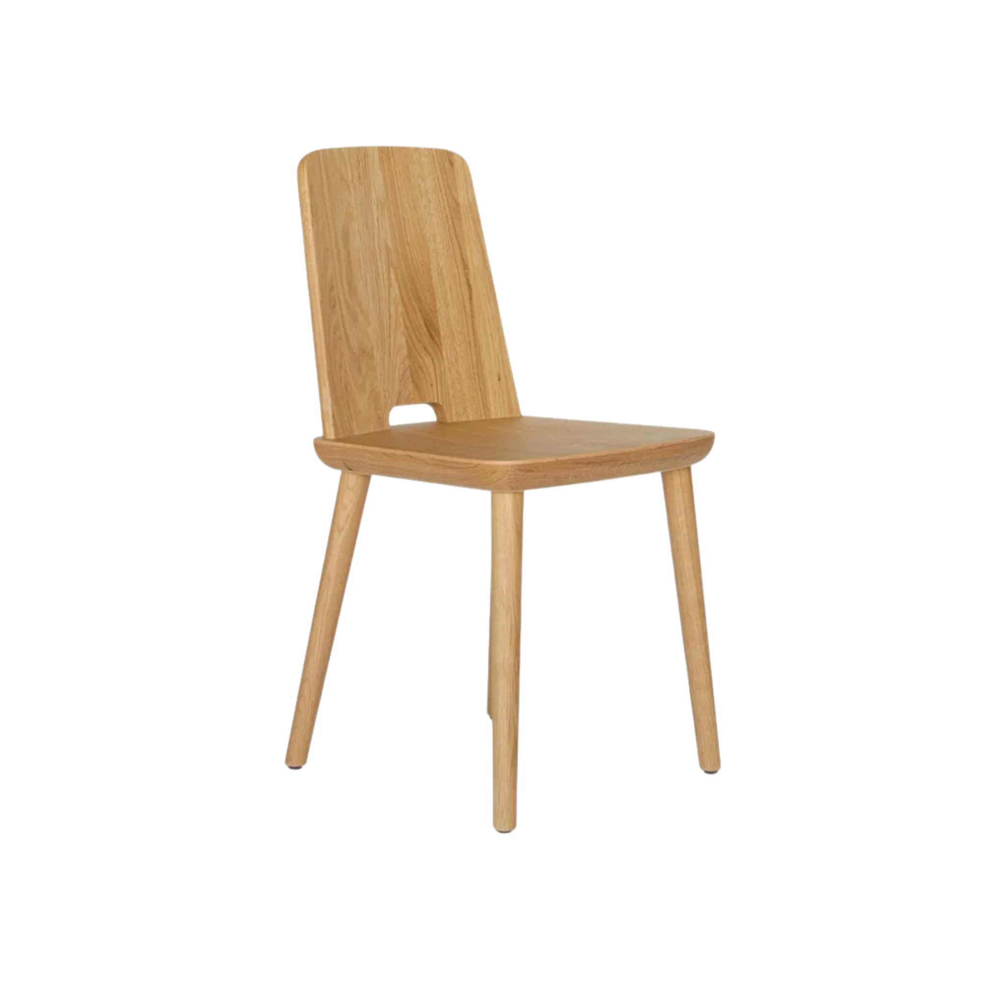 Scaunul Bregenz este realizat din lemn natural de frasin, având un design liniar și versatil, ideal pentru mediile comerciale. Este ușor de mutat și transportat, datorită orificiului din spătar, poziționat la nivelul șezutului. Șezutul este din lemn de frasin solid și furniruit. Este finisat cu lac poliuretanic, asigurându-i durabilitatea în utilizarea pentru trafic comercial intens. Disponibil în diferite culori, cu finisaj deschis. Opțional, pot fi adăugate piciorușe de protecție pentru podea din plastic sau pâslă. Proporțiile sofisticate și designul riguros fac din acest scaun o piesă de mobilier utilizată pe scară largă.