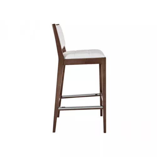 Scaunul de bar Cassie 2 BK îmbină designul atemporal cu detalii rafinate. Fabricat din lemn de fag, cadrul său este disponibil în diverse finisaje și dispune de un suport pentru picioare din lemn cu protecție metalică. Șezutul și spătarul tapițate, accentuate cu detalii cu cusături pătrate, oferă eleganță și confort - ideal pentru baruri, săli de evenimente și spații horeca.