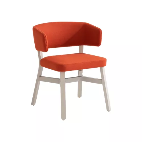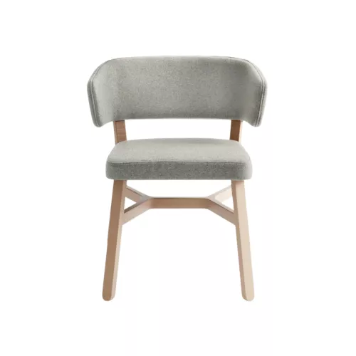 Croissant 571 este un scaun tapițat elegant, cu cadru din lemn de fag masiv, proiectat pentru confort durabil și aspect rafinat. Spătarul curbat oferă suport ergonomic, iar șezutul căptușit asigură o experiență plăcută. Disponibil în diverse nuanțe de baiț și o gamă largă de textile profesionale pentru tapițerie personalizată.