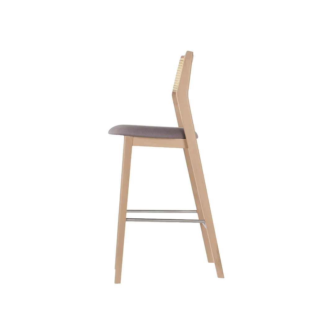 Scaunul de bar Daisie BK combină eleganța atemporală cu designul practic. Cadrul său masiv din lemn de fag, disponibil în diverse finisaje, se potrivește perfect cu un suport metalic pentru picioare pentru un confort de durată. Șezutul tapițat - oferit în țesături premium sau piele ecologică - completează spătarul rafinat din trestie de zahăr. Ideal pentru baruri sau orice decor horeca.