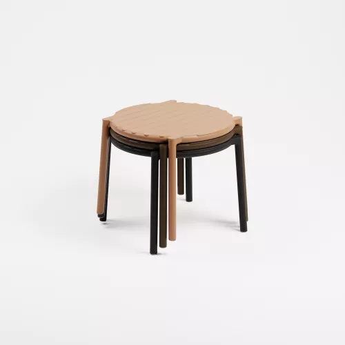 Măsuța laterală Doga este o măsuță joasă monobloc, ușoară, fabricată din rășină de fibră de sticlă, cu un blat rotund și un design modern și practic. Structura sa stivuibilă o face ușor de mutat și depozitat. Concepută pentru spații horeca în aer liber, este fabricată din rășină de polipropilenă din fibră de sticlă colorată uniform, cu aditivi UV și un finisaj mat, asigurând durabilitate și igienizare ușoară.