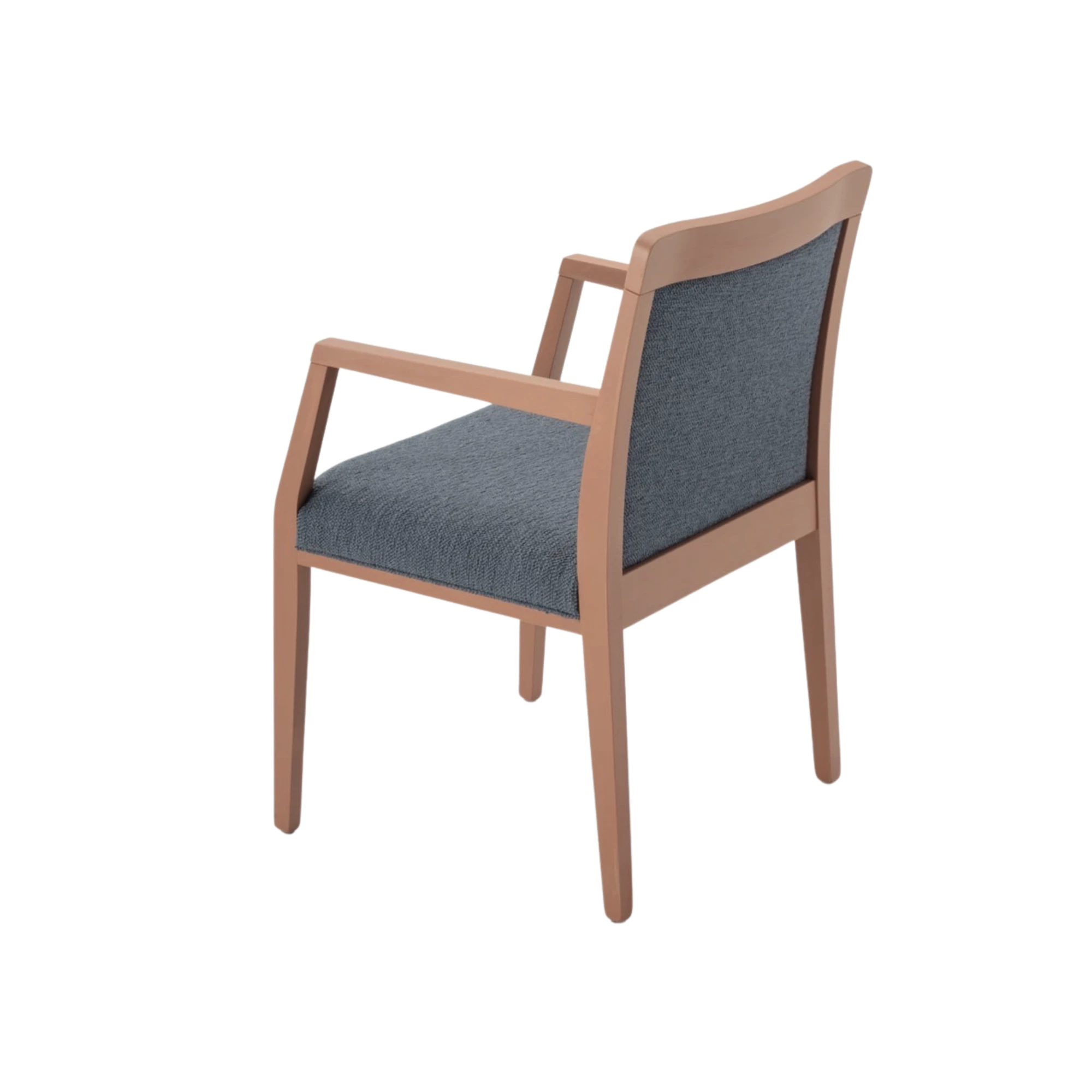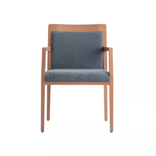 Dubai A este un scaun tapițat cu brațe, cu șezut și spătar confortabil, realizat pe cadru din lemn de fag, lăcuit cu poliuretan și disponibil în mai multe nuanțe. Tapițeria este oferită într-o gamă largă de stofe profesionale sau piele ecologică, rezistentă la uzură. Ideal pentru restaurante sau locații HORECA variate, se potrivește oricărui stil de amenajare.