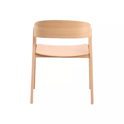 Scaun contemporan din stejar cu brațe integrate și spătar curbat, conturat elegant. Realizat din stejar masiv de înaltă calitate, acest scaun oferă atât rafinament, cât și durabilitate, ideal pentru mediile HoReCa exigente. Conceput pentru a aduce confort și stil în spațiile moderne de dining și lounge.