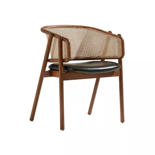 Scaunul Eleran combină aspectul atemporal cu confortul și versatilitatea. Având o structură robustă din lemn de fag disponibilă în mai multe culori, un șezut tapițat moale și un spătar elegant din trestie, se integrează fără efort în diverse stiluri de interior. Tapițeria șezuturilor este oferită într-o gamă largă de țesături profesionale sau piele ecologică, fiind ideal pentru restaurante, hoteluri și alte spații horeca.