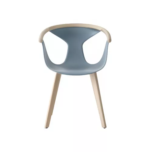Are carcasă din polipropilenă întărită cu fibră de sticlă, antistatică și rezistentă la UV, spătar curbat și picioare din lemn masiv de frasin cu finisaj mat, rezistent la zgârieturi.