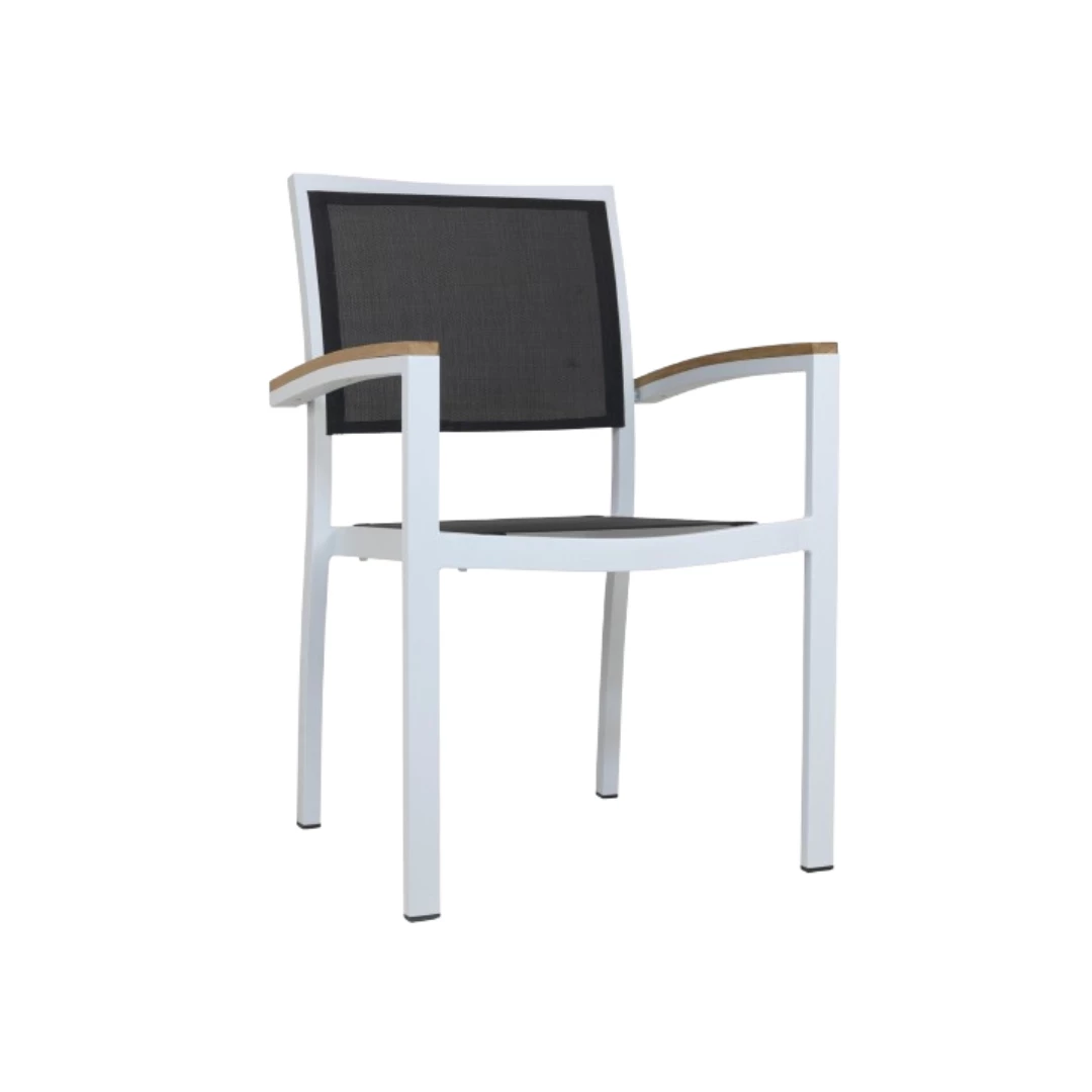 Scaunul Textilene Alb/Negru este combinația perfectă între durabilitate și stil, conceput special pentru restaurante cu terase, cafenele și bistrouri. Cu o structură robustă din aluminiu care măsoară 22221,8 mm, este vopsit în câmp electrostatic pentru o durabilitate sporită și rezistență la UV, ceea ce îl face o alegere excelentă pentru decorurile exterioare. Materialul Textilene oferă confort ridicat, este respirabil și se usucă rapid, asigurând satisfacția maximă a oaspeților. Scaunul dispune și de cotiere pentru o relaxare și un confort sporite. Conceput pentru a fi stivuit, 24 de scaune pot fi stivuite per unitate - ideal pentru economisirea spațiului în afara orelor de vârf. Indiferent dacă creați o zonă de luat masa modernă în aer liber sau modernizați un spațiu existent, scaunul George Argintiu/Negru Textilene combină funcționalitatea, confortul și designul atemporal.