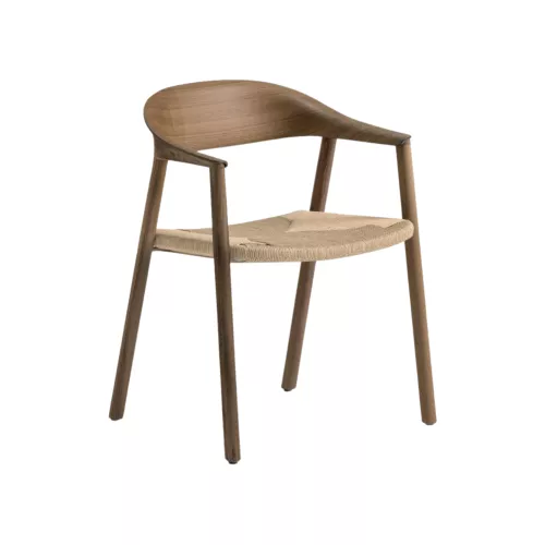 Un echilibru delicat între lejeritate și căldură definește acest fotoliu, care celebrează materialele naturale și măiestria rafinată. Spătarul tridimensional din placaj curbat—disponibil în frasin sau nuc american—oferă o eleganță sculpturală și o ergonomie plăcută, fiind în același timp ușor de manevrat. Șezutul din sfoară de celuloză, țesut manual în Italia, aduce o textură naturală și un aer primitor. Picioarele ovale din lemn se integrează perfect în spătar, creând o siluetă armonioasă ce amintește de o sculptură fin lucrată. Elegant și atemporal, completează cu naturalețe spațiile de ospitalitate și interioarele rezidențiale.