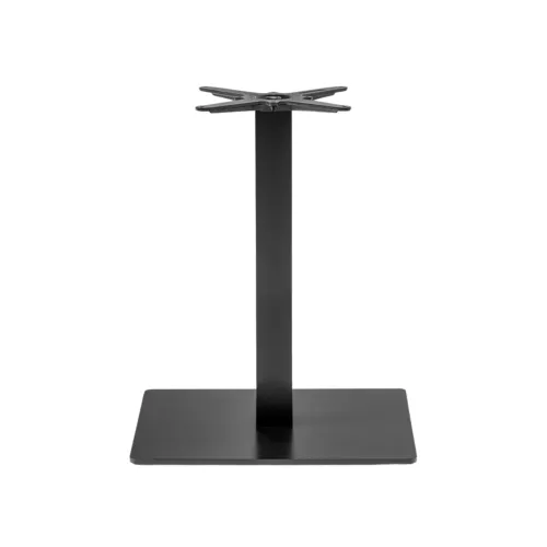 Masă cu bază pătrată din fontă sablată, coloană din oțel vopsit în câmp electrostatic sau inox, cu capac decorativ asortat.