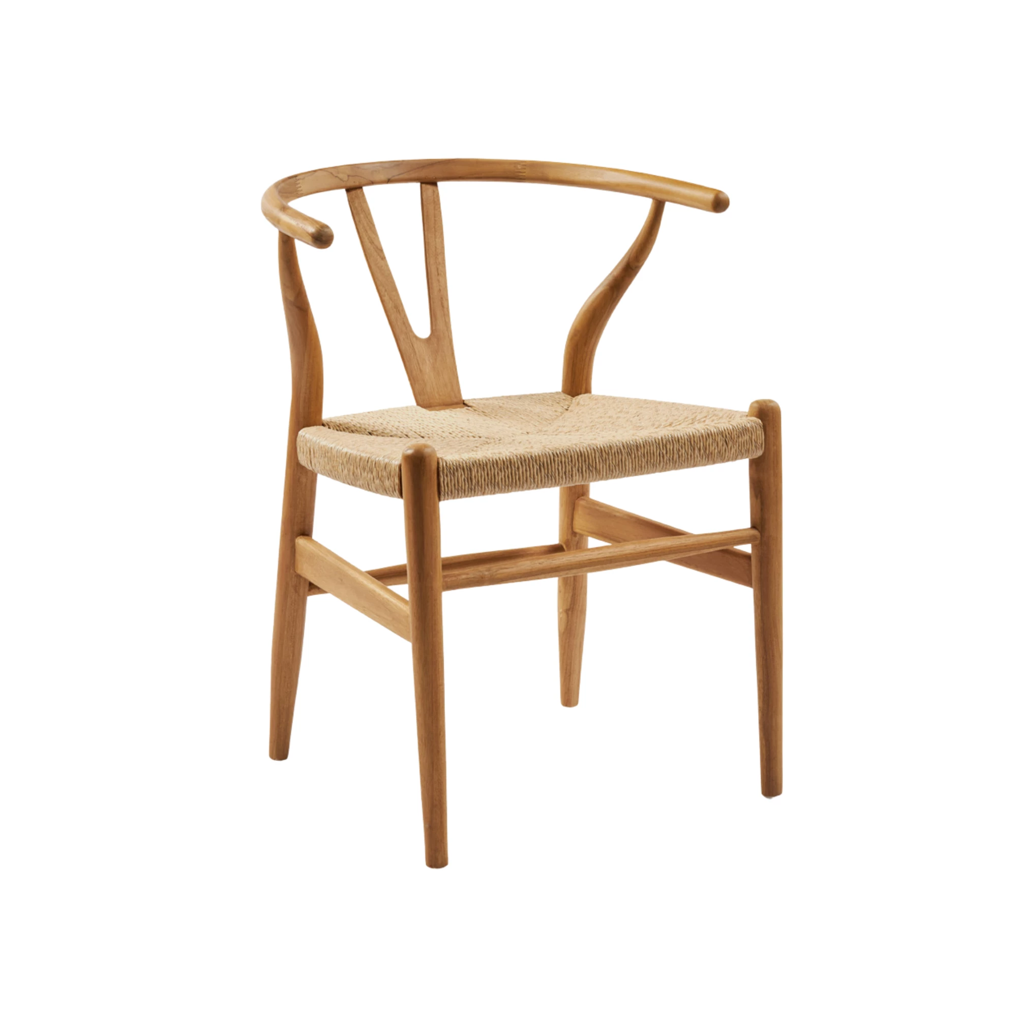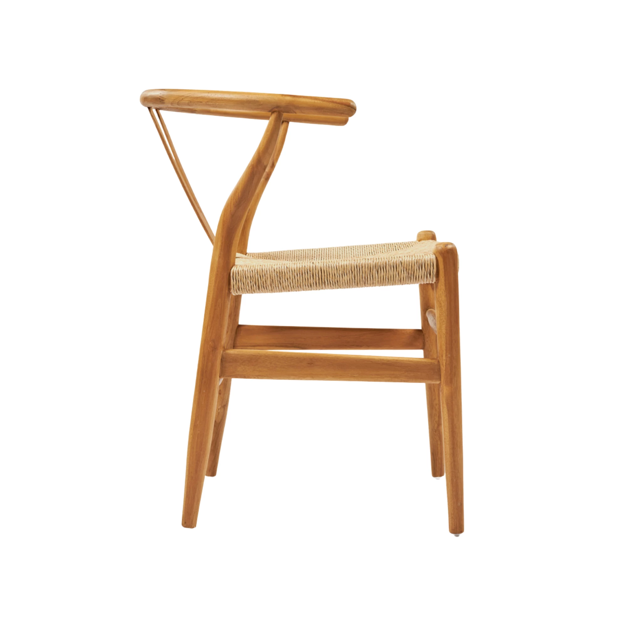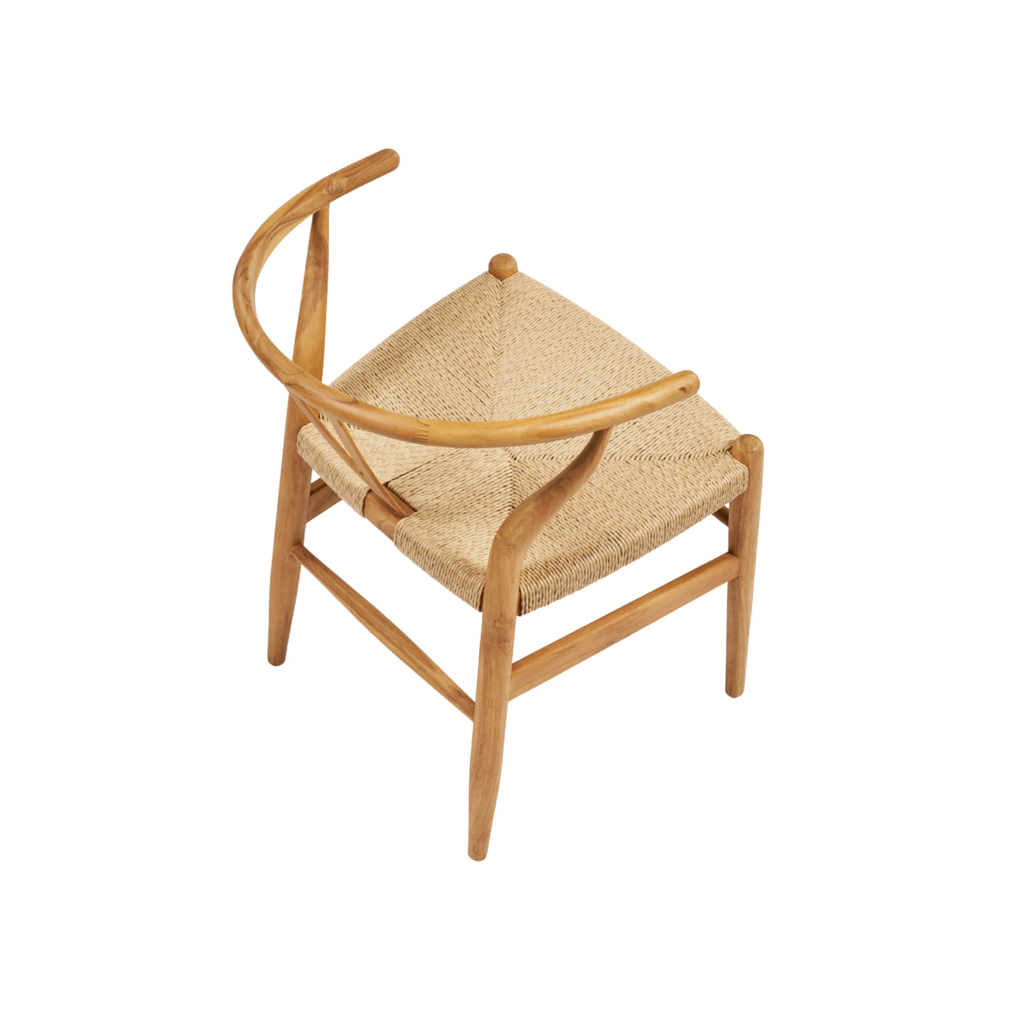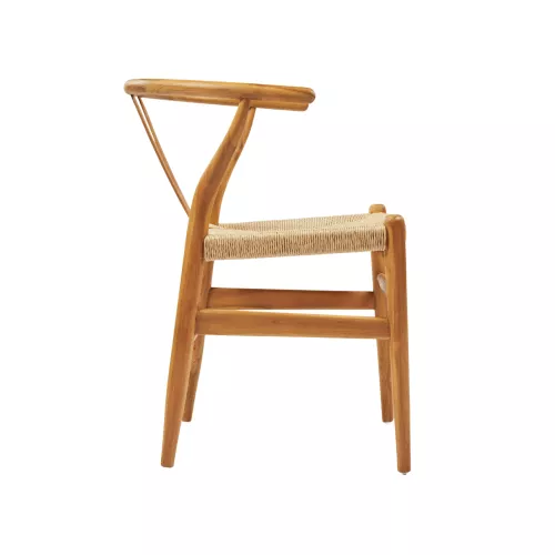 Fotoliu pentru exterior realizat din lemn de tec durabil, cu șezut împletit din ratan sintetic de calitate. Potrivit pentru terase, grădini și spații HoReCa în aer liber, oferind rezistență și un aspect natural. Dimensiuni: 58x57x73 cm.
