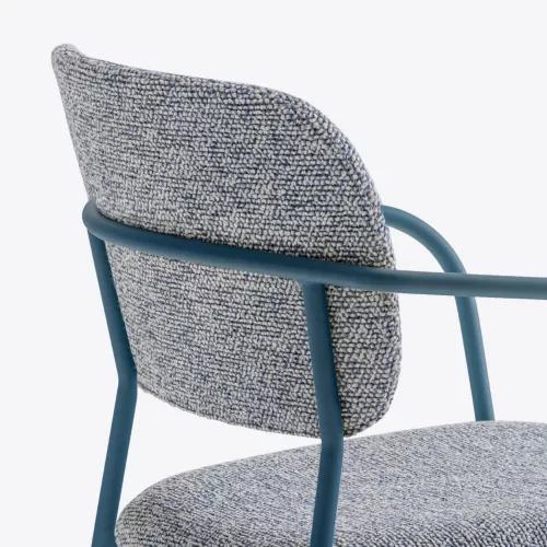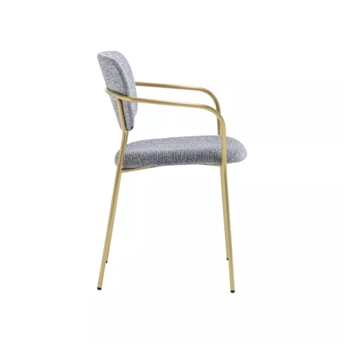 Un echilibru rafinat între forme, ergonomie și eleganță subtilă definește acest scaun cu brațe. Șezutul și spătarul tapițate, separate printr-o deschidere funcțională, creează o siluetă aerisită și delicată, oferind în același timp confort învăluitor. Structura este susținută de un cadru subțire din oțel, care adaugă un accent modern și sofisticat. Personalizarea este posibilă datorită varietății de tapițerii din material textil sau piele și opțiunilor multiple de finisaj pentru oțel, integrându-se perfect în restaurante elegante, lounge-uri moderne sau spații hoteliere premium.