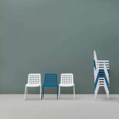 Koi Booki 370 este un scaun modern, creat pentru durabilitate și stil. Având o carcasă din polipropilenă injectată, este disponibil într-o varietate de culori, inclusiv alb, negru, albastru, nisip și portocaliu. Carcasa este întărită cu fibră de sticlă pentru o rezistență suplimentară și este antistatică și rezistentă la UV, asigurând o durabilitate deosebită atât pentru utilizare în interior, cât și în exterior. Baza scaunului este realizată dintr-un cadru din aluminiu turnat, cu picioare din aluminiu extrudat, oferind stabilitate și suport excepționale. Finisajul cu suprafață mată adaugă o textură unică scaunului, făcându-l nu doar funcțional, ci și estetic atractiv.