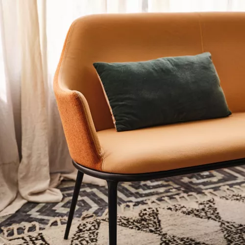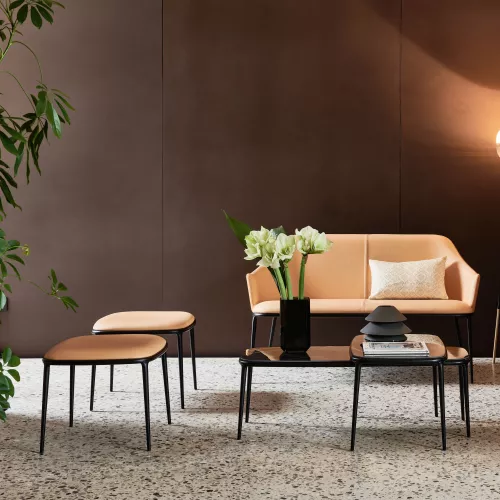 Lea DV M TS este o canapea modernă cu două locuri, destinată exclusiv spațiilor horeca. Cadrul metalic este disponibil în mai multe culori, iar tapițeria poate fi realizată din materiale profesionale sau piele ecologică. Este o alegere elegantă și practică pentru lounge-uri, lobby-uri și alte zone comerciale.