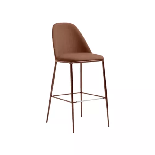 Acest scaun de bar îmbină eleganța și confortul, având o bază solidă din metal și tapițerie moale, disponibilă în stofă, piele sau piele ecologică. Se poate opta pentru combinații de materiale sau culori diferite între față și spate, oferind un aspect personalizat. Ideal pentru baruri, restaurante și zone lounge moderne.