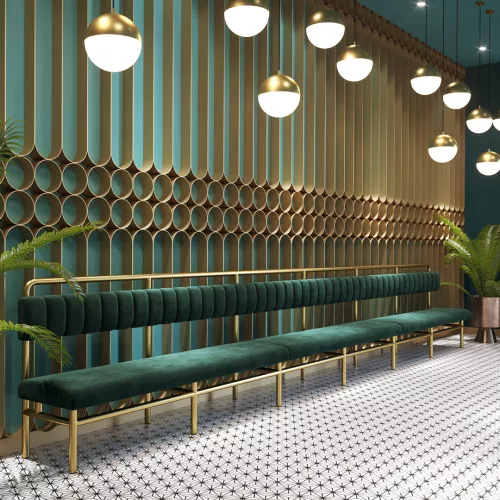 Manhattan Bench este o banchetă modulară pentru dining, realizată cu un cadru din oțel vopsit în câmp electrostatic și spumă de înaltă densitate pentru confort și rezistență superioară. Poate fi personalizată complet cu o gamă variată de materiale profesionale.