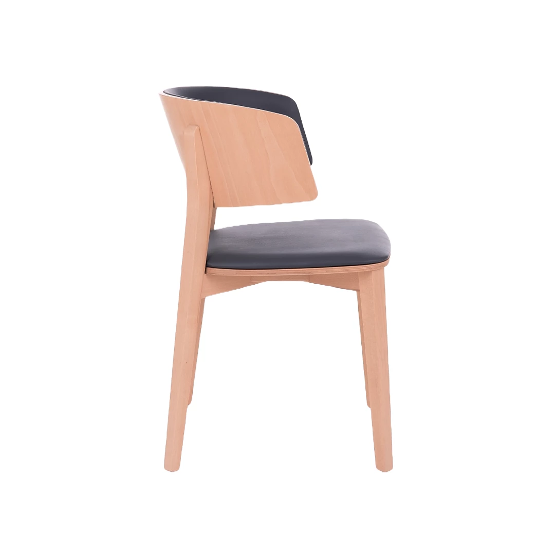 Realizat cu un cadru solid din lemn de fag acoperit cu lac poliuretanic protector, acest scaun îmbină eleganța cu rezistența. Spuma de înaltă densitate asigură confort de durată și rezistență ridicată la uzură intensă, fiind ideal pentru medii horeca solicitante. Produsul poate fi complet personalizat prin alegerea unei game variate de materiale profesionale.