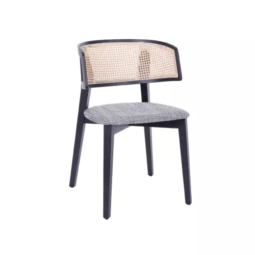 Acest scaun de restaurant cu design elegant îmbină durabilitatea cu un stil atemporal. Realizat din lemn masiv de fag sau stejar cu finisaj natural, scaunul este prevăzut cu un șezut tapițat confortabil și un spătar rafinat din trestie împletită manual. Inspirat din stilul mid-century, acest model aduce un plus de eleganță și funcționalitate oricărui spațiu horeca, fie el restaurant, cafenea sau bistro.
