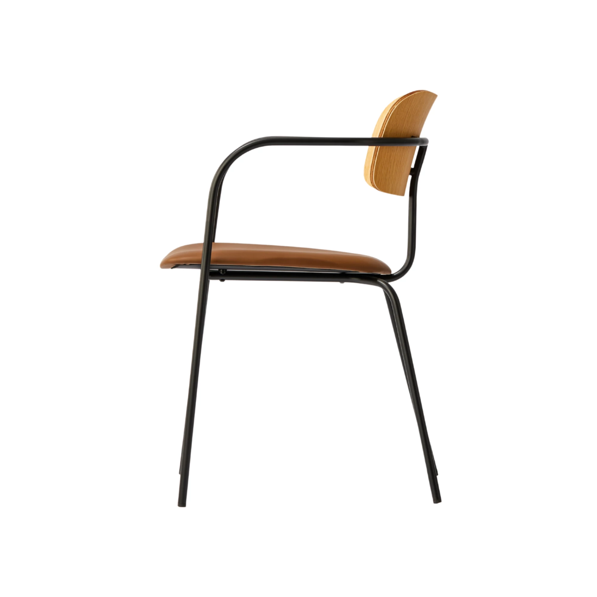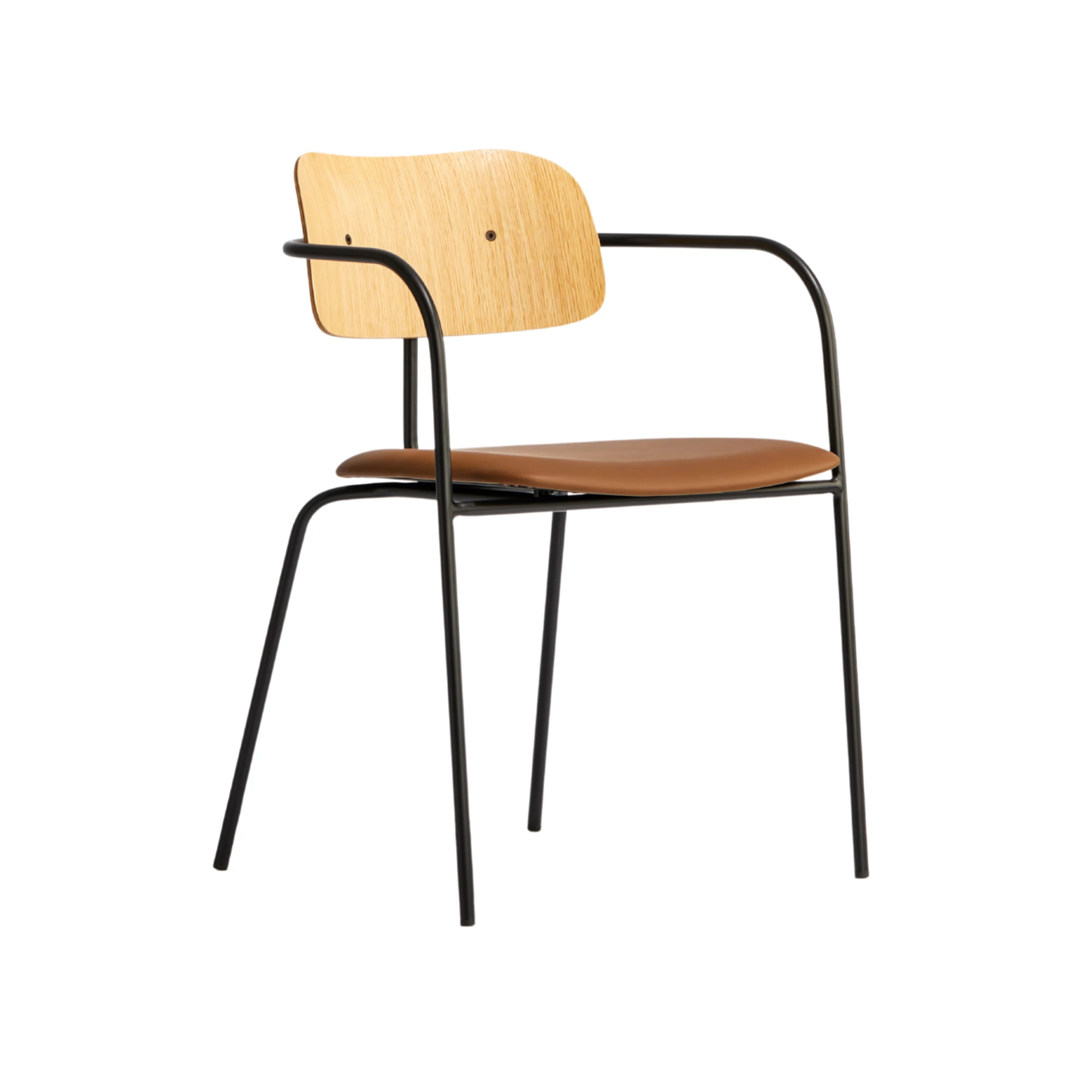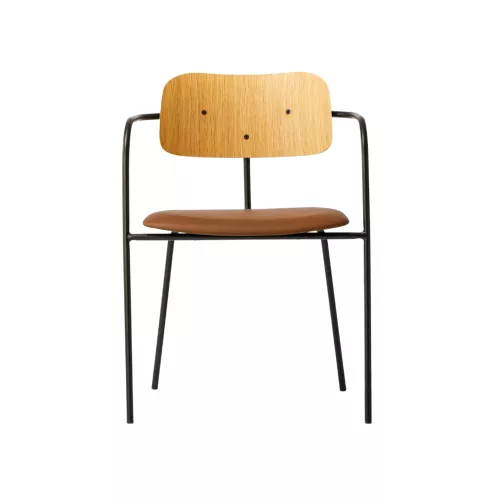 Maxwell este un scaun metalic modern cu brațe, cu cadru din oțel, șezut tapițat și spătar din lemn. Tapițeria este disponibilă într-o gamă variată de stofe profesionale sau piele ecologică. Poate fi personalizat și este ideal pentru spații HoReCa și diferite stiluri interioare.