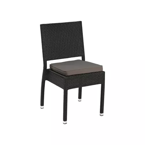 Mond S este un scaun de exterior destinat utilizării în locații horeca. Are cadru din aluminiu vopsit în câmp electrostatic și șezut/spătar din ratan sintetic plat, negru. Rezistent la UV și intemperii, este stivuibil până la 8 bucăți – ideal pentru terase.