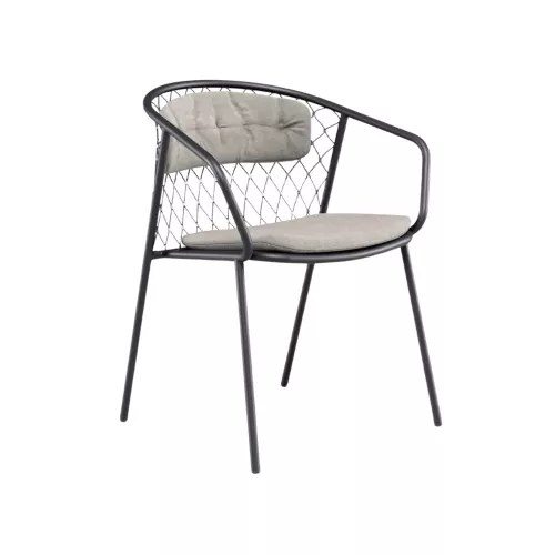 Scaunul Nef A este alegerea ideală pentru terasele de restaurant, cafenele și bistrouri elegante. Construit cu un cadru din aluminiu și detalii din oțel inoxidabil și sfoară sintetică, este proiectat să reziste la intemperii, oferind în același timp confort și stil. Perna de șezut și perna de spate asigură un plus de confort, fiind perfect pentru locațiile exterioare, unde oaspeții vor sta pentru perioade mai lungi. Cu brațe pentru un plus de relaxare, scaunul Nef A este o alegere funcțională și elegantă pentru orice locație exterioară. Designul său contemporan îl face versatil pentru orice ambient de dining modern, iar materialele folosite garantează o performanță de lungă durată, chiar și în zonele cu trafic intens. Indiferent dacă amenajați o terasă de cafenea sau un spațiu exterior de restaurant, Nef A adaugă eleganță și durabilitate.