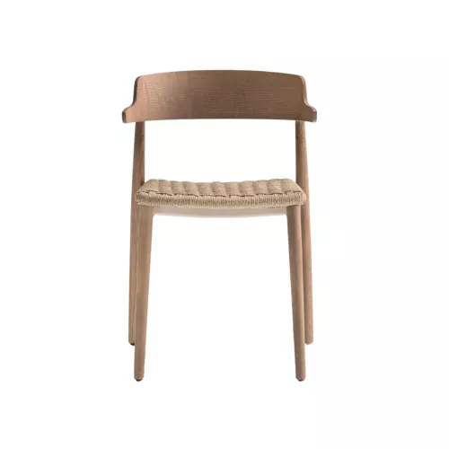 Colecția Nemea reflectă eleganța atemporală inspirată de designul clasic și meșteșugul rafinat. Fotoliul are un spătar din lemn stratificat, picioare din lemn masiv de frasin sau nuc american și un cadru solid din aluminiu turnat. Șezutul este împletit manual din sfoară de celuloză naturală, oferind o textură caldă și autentică. Cotierele sunt concepute pentru a permite sprijinirea fotoliului pe masă și ridicarea lui de pe podea, facilitând curățarea și întreținerea spațiului.