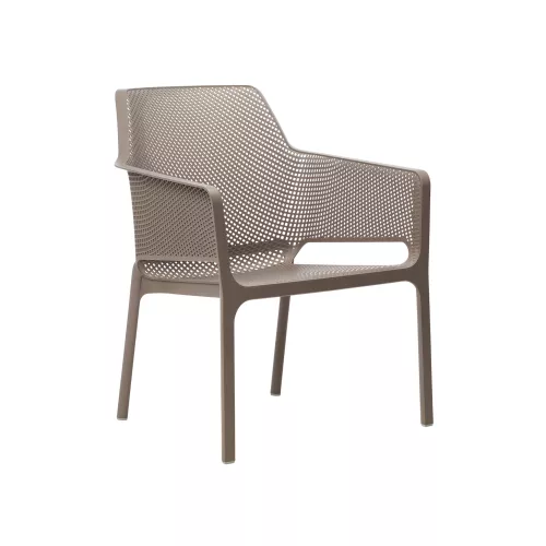Net Relax este fotoliul perfect ce îmbină confortul, eleganța și durabilitatea pentru spațiile HoReCa. Realizat din polipropilenă cu fibră de sticlă și finisaj mat, dispune de picioare antiderapante și design stivuibil pentru depozitare eficientă. Rezistent la intemperii și raze UV, este ideal pentru utilizare intensivă în aer liber. Disponibil în culorile cadrului: Alb, Antracit, Salice, Tortora, Senape, Coral și cu perne din spumă poliuretanică (densitate 28 kg/m³) în nuanțe Grey Stone, Rosa Quarzo, Senape, Denim, The Verde, Sardinia, Alb sau Gri. Creat pentru terase de restaurante, cafenele și bistrouri ce caută un aspect rafinat și rezistență de lungă durată.