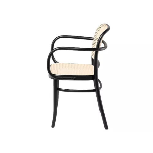 Scaunul din lemn Pavol A Cane cu cotiere are un design clasic inspirat de anii 1930. Având o structură durabilă din lemn de fag și un șezut și spătar elegant din trestie, acesta îmbină farmecul vintage cu funcționalitatea atemporală. Disponibil în mai multe culori de pete de lemn, acest scaun este ideal pentru interioare HoReCa elegante și versatile.