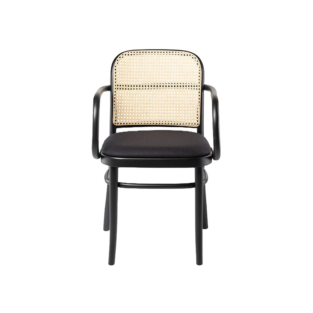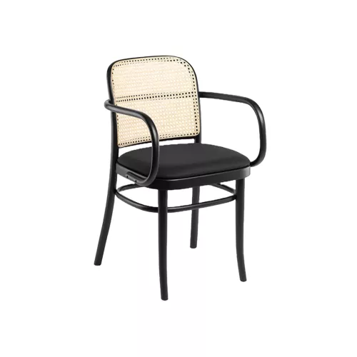 Scaunul din lemn Pavol A FS cu cotiere combină designul clasic al anilor 1930 cu confortul modern. Cadrul său din lemn de fag susține un șezut tapițat și un spătar elegant din trestie, disponibil într-o gamă largă de țesături sau piele ecologică. Disponibil în mai multe culori de lemn, este perfect pentru interioare HoReCa elegante și versatile.