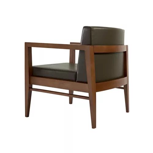 Sorrana este un fotoliu elegant, ideal pentru locații horeca cu trafic intens. Realizat pe cadru din lemn de fag, are șezut și spătar tapițate cu spumă de înaltă densitate. Disponibil într-o gamă largă de materiale profesionale sau piele ecologică. Designul său atemporal se potrivește perfect în lobby-uri, camere de hotel sau zone de lounge.