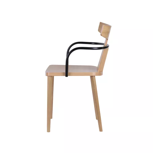 T Armchair este un scaun cu brațe elegant și rezistent, realizat din lemn masiv de fag, conceput pentru a oferi confort și stil în restaurante, cafenele, bistrouri și pub-uri. Brațele solide oferă un plus de confort, fiind ideal pentru utilizare îndelungată. Șezutul poate fi furniruit sau tapițat, în funcție de preferințe, iar opțiunile de tapițerie includ o varietate largă de texturi și culori. Acest lucru permite integrarea ușoară în orice stil de amenajare interioară, de la modern la clasic sau rustic. Cu un design rafinat și o construcție robustă, T Armchair este potrivit pentru spații cu trafic intens, fără a face compromisuri în privința esteticii.