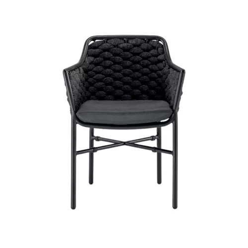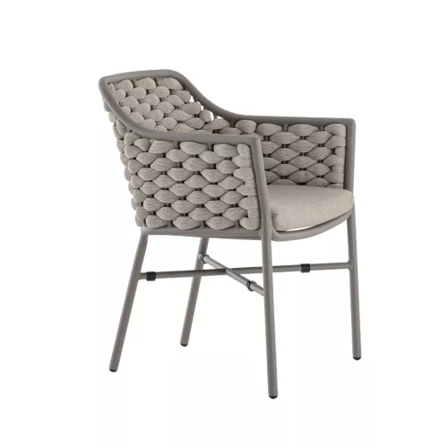Tosca este un fotoliu de exterior elegant, ideal pentru terasele horeca moderne. Construit pe un cadru rezistent din aluminiu, este îmbrăcat în textilenă și frânghie din cauciuc, oferind confort și durabilitate. Se poate stivui și include perne din textilenă. Disponibil în mai multe variante pentru o adaptare ușoară în orice spațiu exterior.