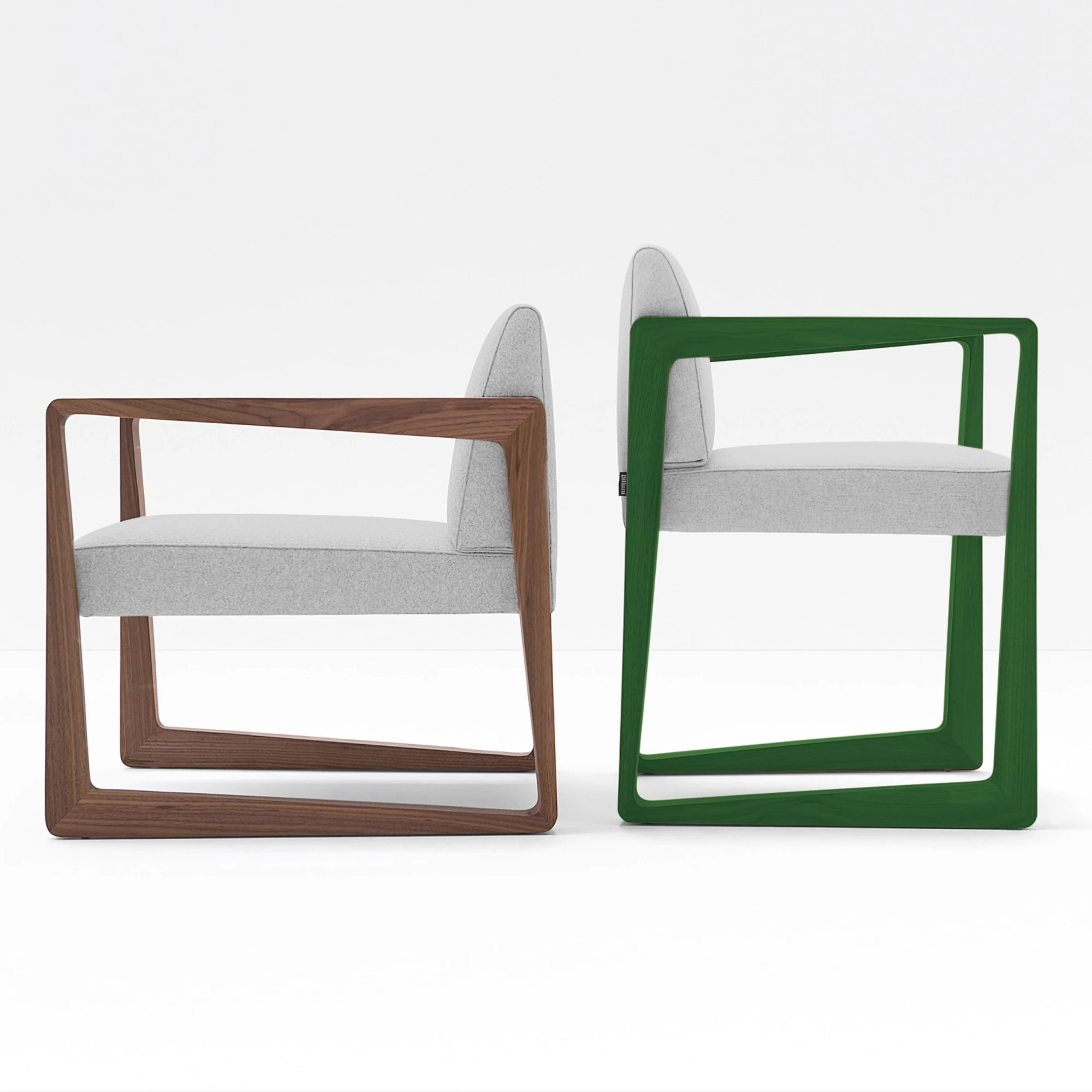 Fotoliul lounge Askew 5C36 are un cadru robust din lemn de fag, disponibil în mai multe nuanțe de finisaj. Dispune de un șezut și spătar tapițate, realizate dintr-o gamă largă de țesături profesionale sau piele ecologică rezistente. Potrivit pentru orice locație horeca, stilul său versatil și opțiunile de personalizare îl fac ușor de integrat în diverse amenajări.