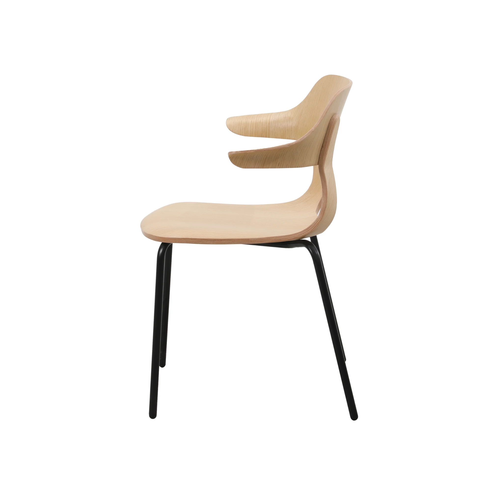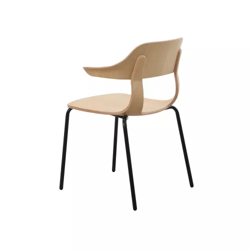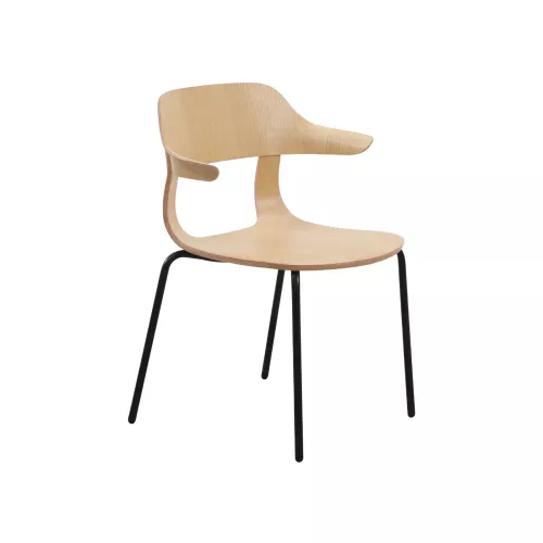 Scaun rafinat din stejar, cu forme fluide și brațe deschise, ideal pentru spații moderne. Carcasa curbă oferă confort vizual și funcțional, susținută de patru picioare subțiri din lemn sau metal. Un scaun echilibrat pentru interioare HoReCa elegante.