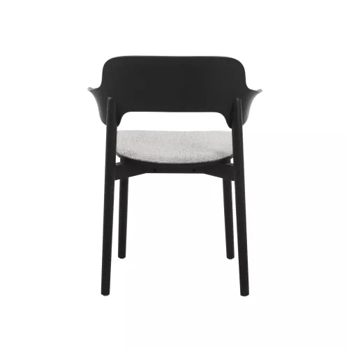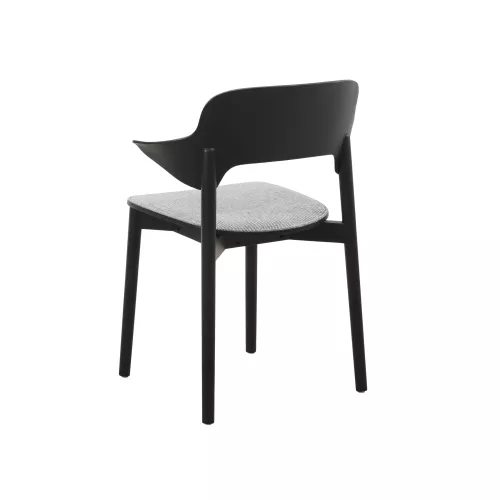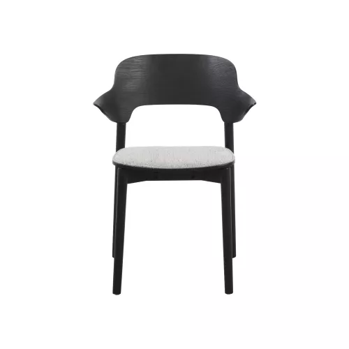 Scaun modern din stejar, cu brațe și șezut tapițat pentru un plus de confort. Realizat din lemn masiv, ideal pentru spații HoReCa elegante. Disponibil în mai multe nuanțe de lemn și tapițerii personalizabile.