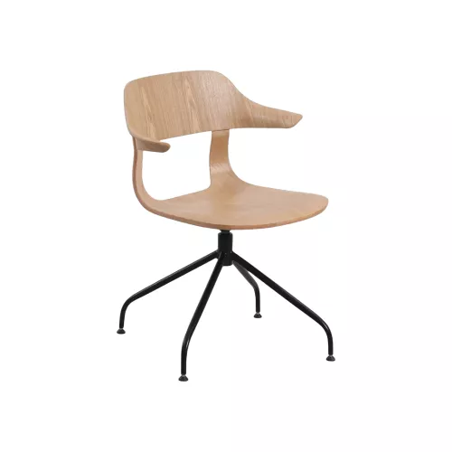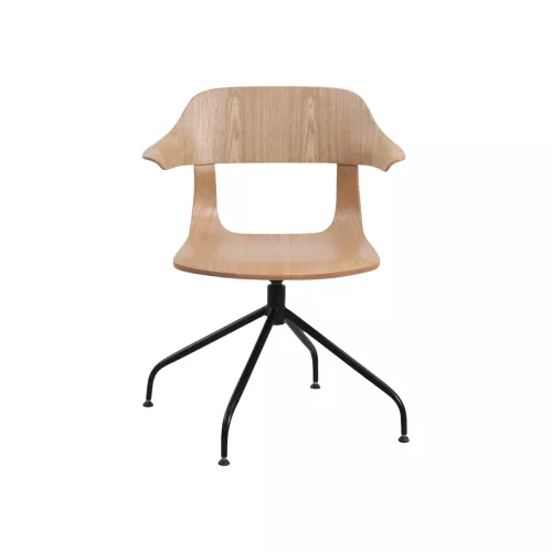 Scaun din lemn curbat cu brațe integrate și un design aerisit, modern. Carcasa elegantă din stejar este susținută de o bază metalică tip spider, pentru un contrast rafinat între căldura lemnului și robustețea metalului. Potrivit pentru spații HoReCa cu accent pe design.