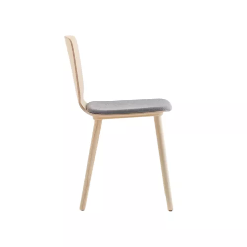 Scaun cu șezut curbat din placaj de frasin cu grosime variabilă și picioare din lemn masiv de frasin, ce oferă un aspect cald și natural. Disponibil în 8 finisaje moderne: albastru, azur, verde închis, verde mentă, roșu, roz, maro închis și maro. Ideal pentru spații horeca elegante și confortabile.