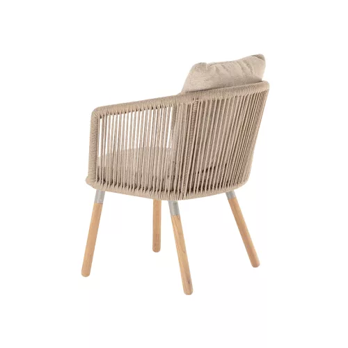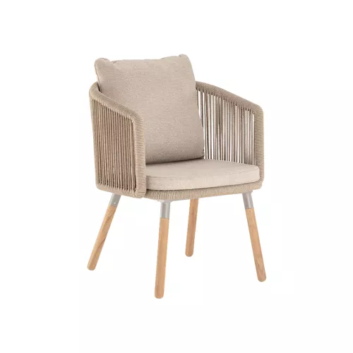 Bahamas V este un fotoliu elegant de exterior, cu un cadru robust din aluminiu îmbrăcat în sfoară de poliester și picioare din lemn de teak pentru un aspect natural. Pernă confortabilă, tapițată cu material acrilic rezistent la UV. Ideal pentru terase horeca în aer liber și potrivit pentru diverse stiluri de design interior.