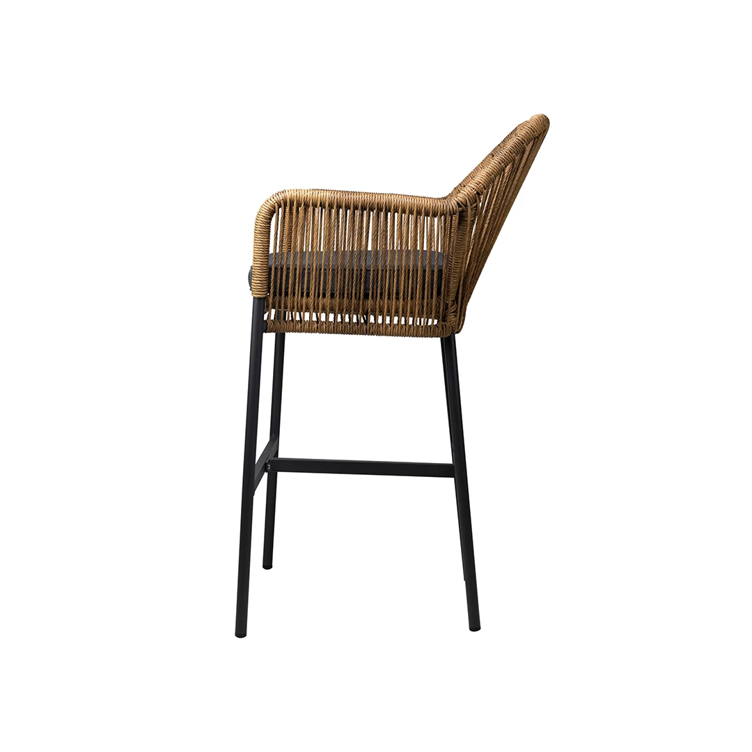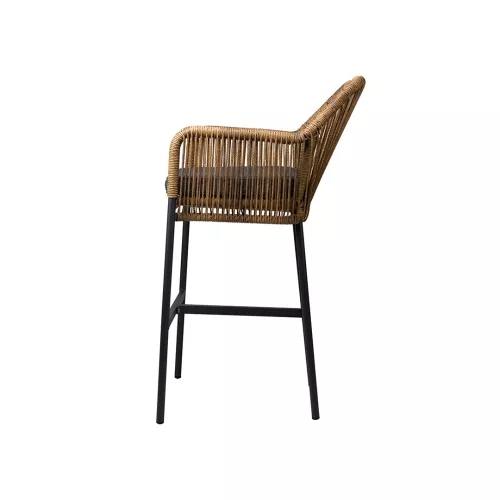 Scaunul de bar pentru terasă Baleric este special conceput pentru stil și rezistență în mediile Horeca solicitante. Având o structură robustă din aluminiu antracit și spătar și cotiere din răchită rezistentă la UV, acesta îmbină durabilitatea cu o estetică modernă. Ideal pentru spațiile de ospitalitate în aer liber, aspectul său rafinat se potrivește atât hotelurilor, restaurantelor, cât și cafenelelor. Disponibil în maro, verde, albastru și gri, Baleric oferă opțiuni vibrante de personalizare. Include o pernă confortabilă și are o formă ergonomică pentru un confort sporit la ședere. Este disponibil și un scaun de terasă asortat, ceea ce îl face soluția perfectă pentru amenajări de terase Horeca unite.