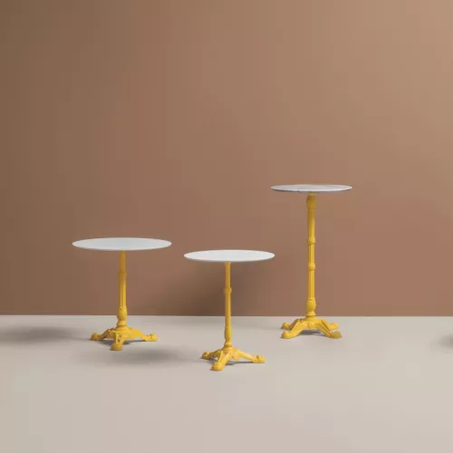 Bistrot 4102 este o bază de masă de calitate superioară, ideală pentru spații HoReCa. Vopsirea în câmp electrostatic pentru exterior oferă rezistență și durabilitate. Suportă blaturi de până la 90x90 cm sau ø110 cm, asigurând stabilitate excelentă. Este alegerea ideală pentru restaurante, cafenele și terase care caută funcționalitate și stil.