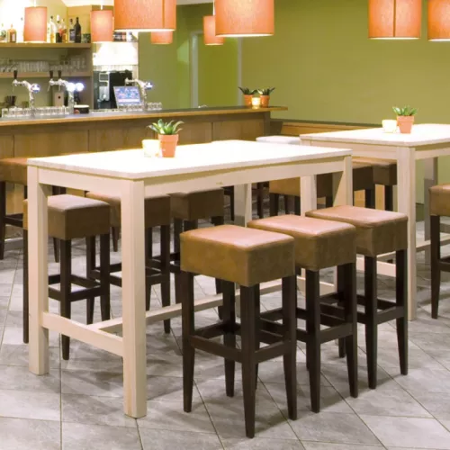 Masa de bar Cleo este o soluție rafinată și robustă, concepută pentru sectorul ospitalității, oferind un echilibru între eleganță atemporală și funcționalitate. Fabricată din lemn masiv de stejar, are un finisaj superior frumos neted și picioare drepte de 7x7 cm, care asigură atât stabilitate vizuală, cât și rezistență de lungă durată. Masa este disponibilă într-o gamă largă de dimensiuni și finisaje de lemn, permițând integrarea perfectă în diverse interioare de bar, restaurante sau cafenele. Pentru durabilitate și protecție sporite în zonele cu trafic intens, masa de bar Cleo poate fi echipată opțional cu o bandă pentru picioare din oțel inoxidabil. Ideală pentru unitățile care caută o soluție naturală, durabilă și personalizabilă pentru zonele lor de bar frecvent utilizate.