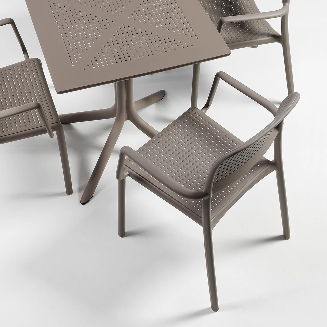 Masa Clip este soluția ideală pentru spațiile profesionale de luat masa în aer liber, combinând durabilitatea, stilul și caracterul practic. Proiectată cu o structură robustă din polipropilenă, aceasta rezistă la utilizare intensă în restaurante, cafenele, bistrouri și terase aglomerate. Disponibilă într-o gamă largă de culori sofisticate - alb, antracit, tortora, agave și tutun - Clip se adaptează perfect oricărui decor, creând o atmosferă coerentă și primitoare. Construcția sa ușoară, dar robustă, asigură o repoziționare ușoară, menținând în același timp stabilitatea și performanța de lungă durată, fiind perfectă pentru mediile comerciale unde fiabilitatea și estetica sunt la fel de importante.