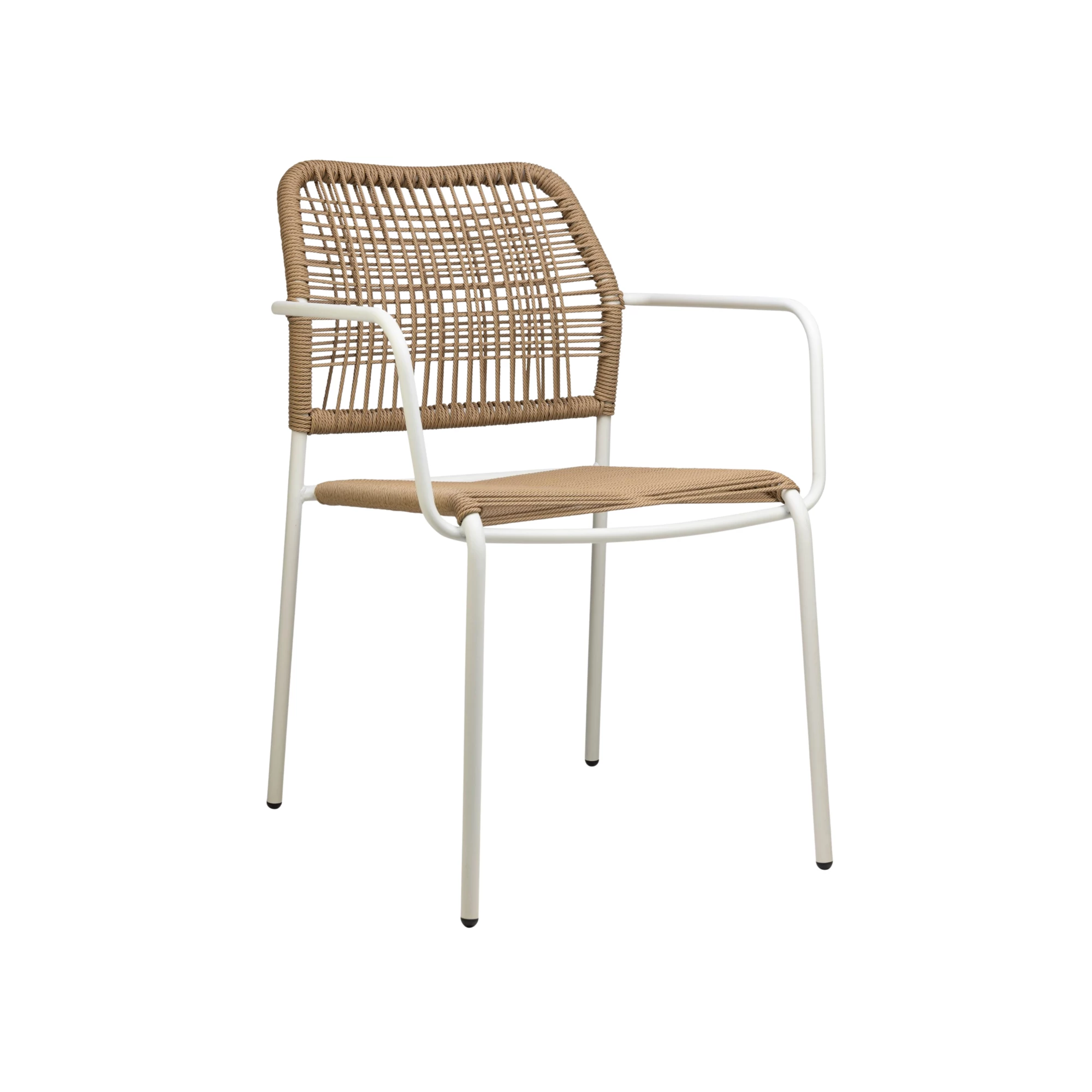 Împletitura din frânghie este rezistentă la intemperii și adaptată utilizării profesionale la exterior, iar structura stivuibilă permite depozitarea eficientă.